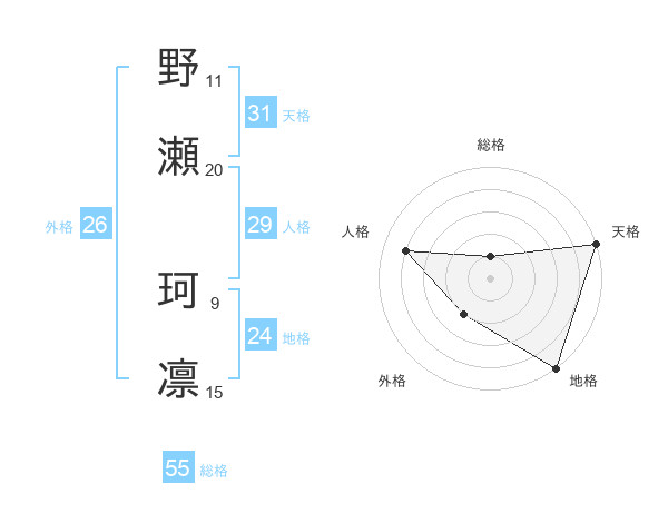 野瀬 珂凛さんの総格は55画の1点!