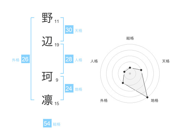 野辺 珂凛さんの総格は54画の1点!