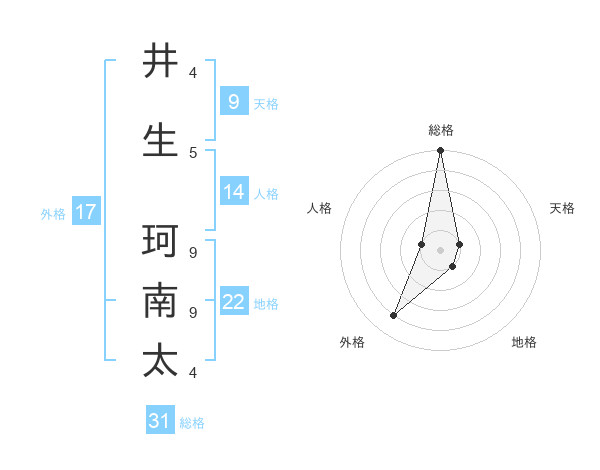 井生 珂南太さんの総格は31画の5点!