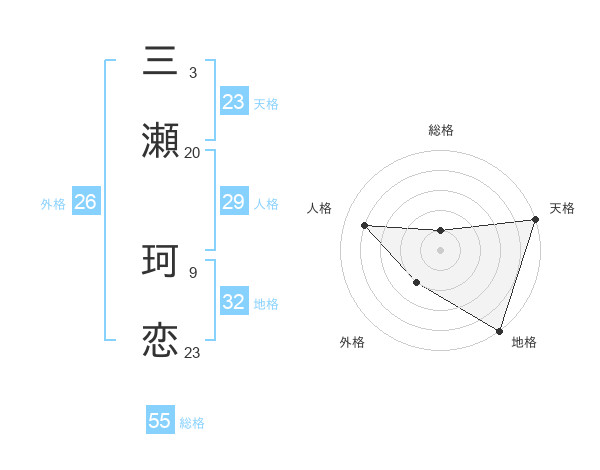 三瀬 珂恋さんの天格は23画の5点!