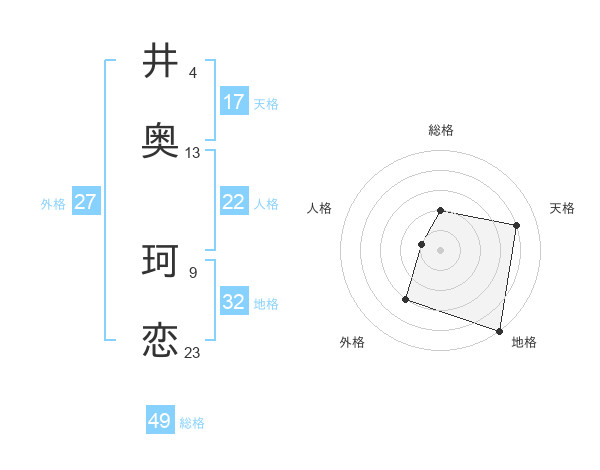 井奥 珂恋さんの天格は17画の4点!