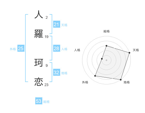 人羅 珂恋さんの総格は53画の3点!