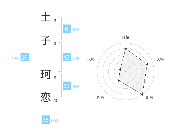 土子 珂恋さんの総格は38画の4点!