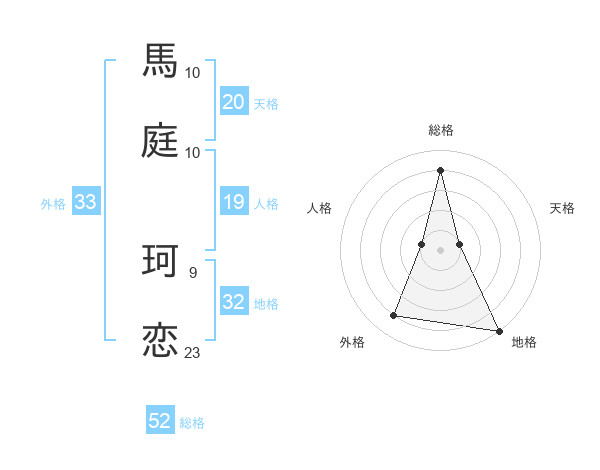 馬庭 珂恋さんを姓名の画数から五運を鑑定