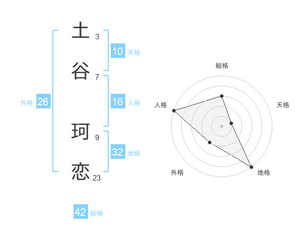 土谷 珂恋さんを姓名の画数から五運を鑑定
