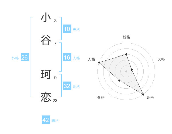 小谷 珂恋さんを姓名の画数から五運を鑑定