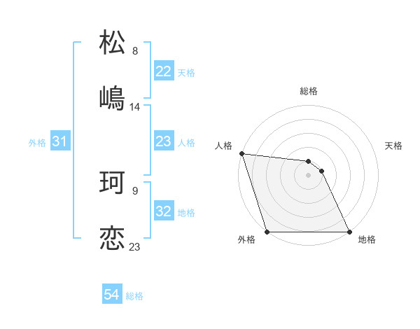 松嶋 珂恋さんを姓名の画数から五運を鑑定