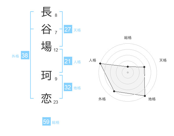 長谷場 珂恋さんを姓名の画数から五運を鑑定