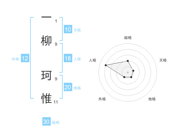 一柳 珂惟さんを姓名の画数から五運を鑑定
