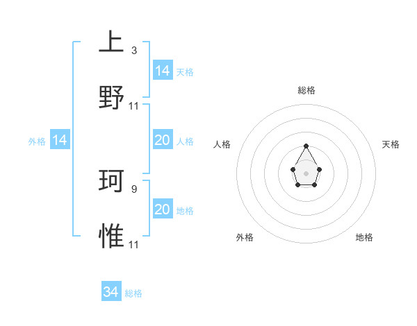 上野 珂惟さんを姓名の画数から五運を鑑定