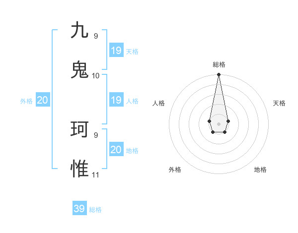 九鬼 珂惟さんを姓名の画数から五運を鑑定