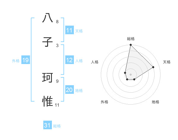 八子 珂惟さんの総格は31画の5点!
