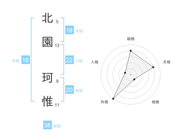 北園 珂惟さんを姓名の画数から五運を鑑定