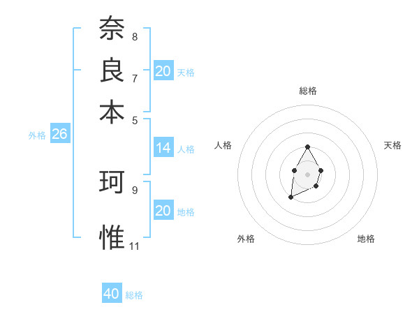 奈良本 珂惟さんの地格は20画の1点!
