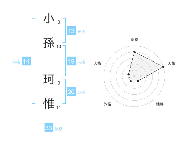 小孫 珂惟さんを姓名の画数から五運を鑑定