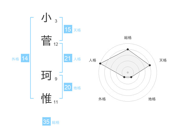 小菅 珂惟さんの天格は15画の4点!