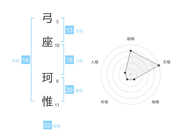 弓座 珂惟さんを姓名の画数から五運を鑑定