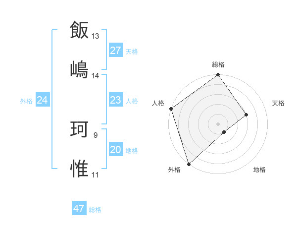 飯嶋 珂惟さんの総格は47画の5点!