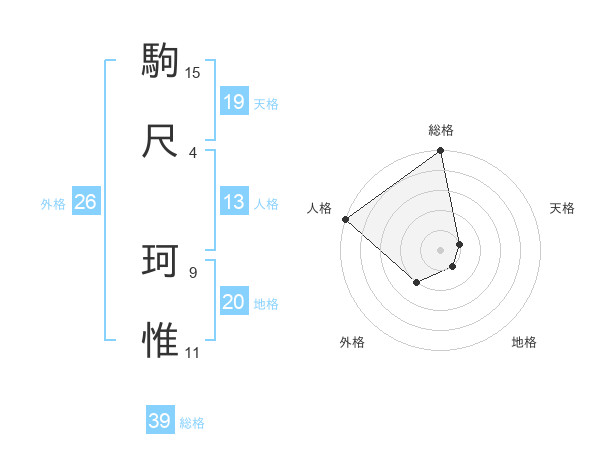 駒尺 珂惟さんを姓名の画数から五運を鑑定