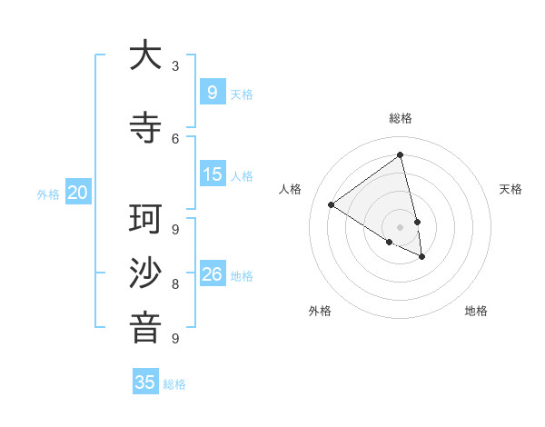大寺 珂沙音さんを姓名の画数から五運を鑑定