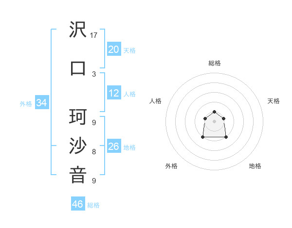 沢口 珂沙音さんを姓名の画数から五運を鑑定