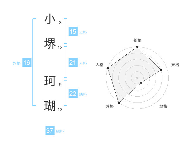 小堺 珂瑚さんの総格は37画の5点!