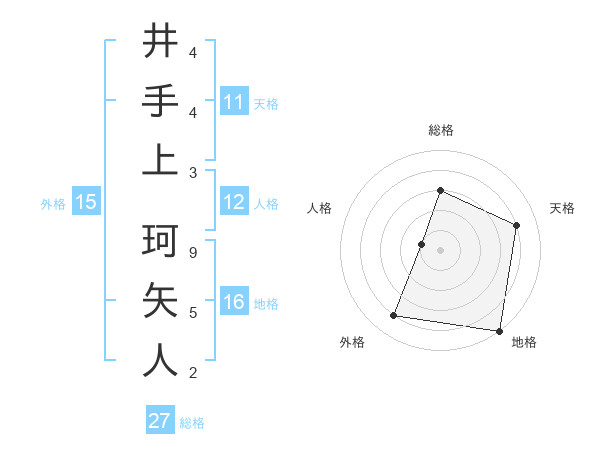 井手上 珂矢人さんを姓名の画数から五運を鑑定