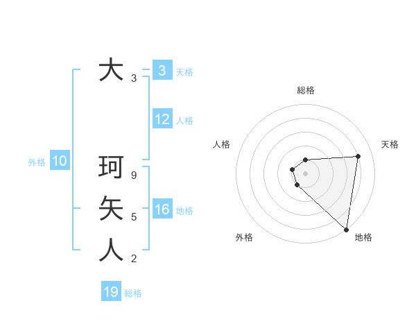 大 珂矢人さんの総格は19画の1点
