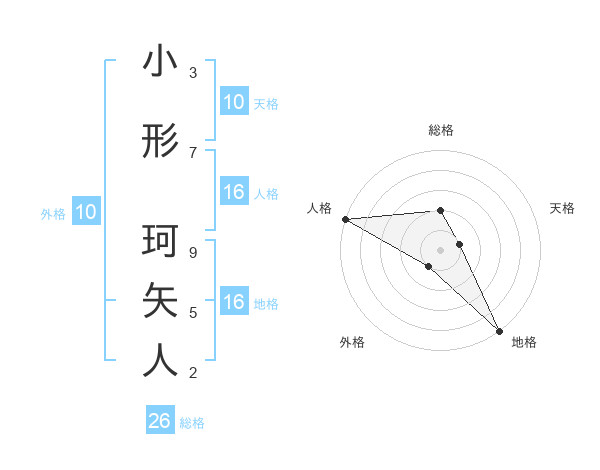 小形 珂矢人さんの総格は26画の2点!