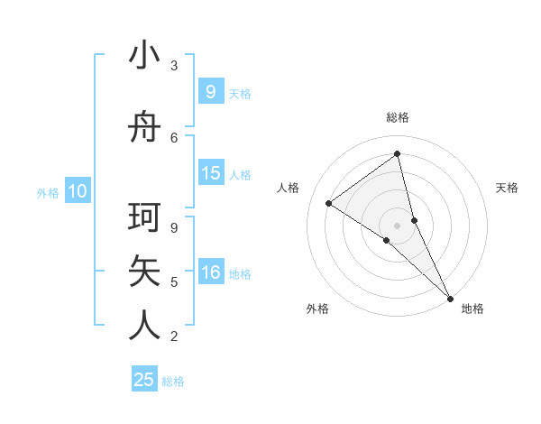 小舟 珂矢人さんを姓名の画数から五運を鑑定