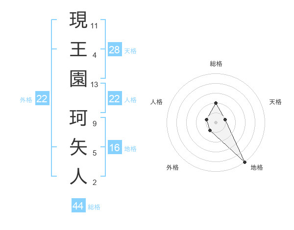 現王園 珂矢人さんの人格は22画の1点!