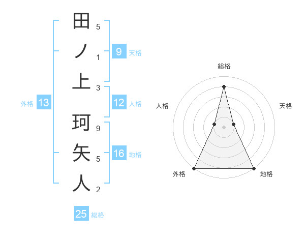 田ノ上 珂矢人さんを姓名の画数から五運を鑑定