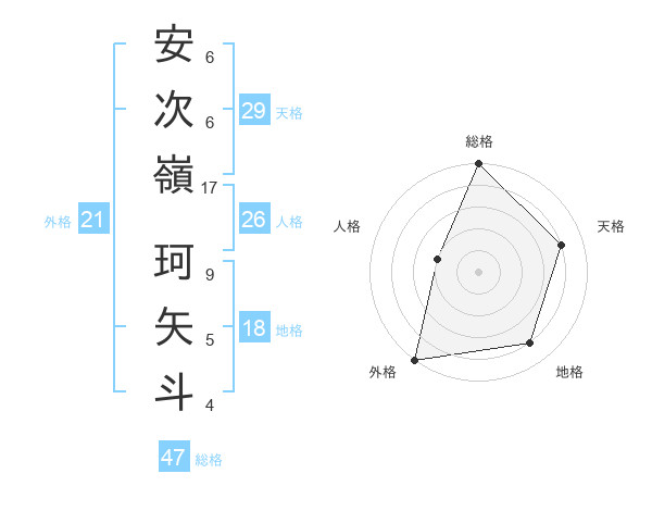 安次嶺 珂矢斗さんの総格は47画の5点!
