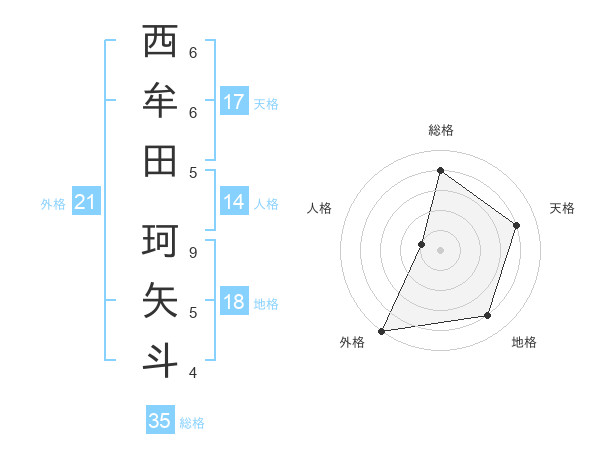 西牟田 珂矢斗さんを姓名の画数から五運を鑑定