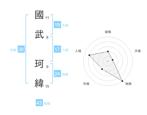 國武 珂緯さんを姓名の画数から五運を鑑定