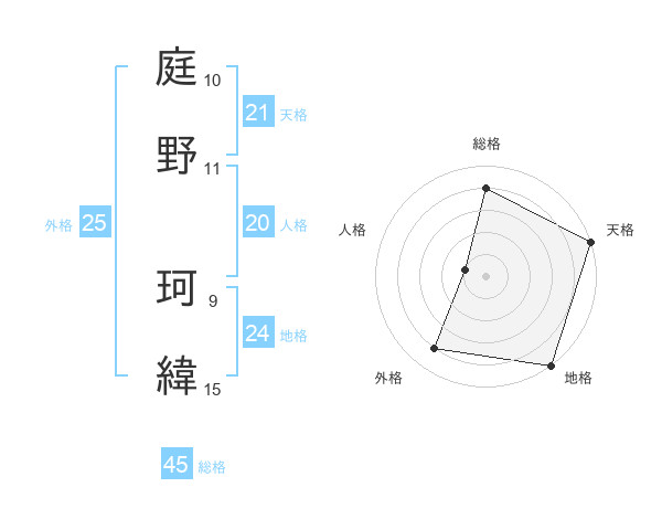 庭野 珂緯さんを姓名の画数から五運を鑑定