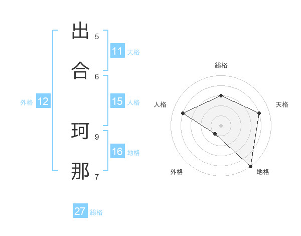 出合 珂那さんの地格は16画の5点!