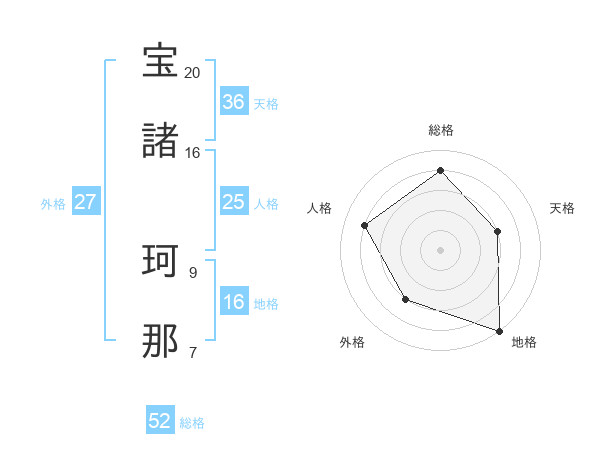 宝諸 珂那さんの外格は27画の3点!