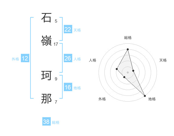 石嶺 珂那さんの総格は38画の4点!