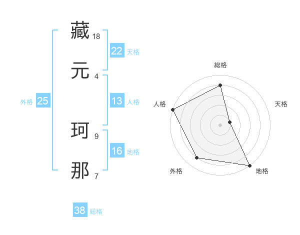 藏元 珂那さんを姓名の画数から五運を鑑定