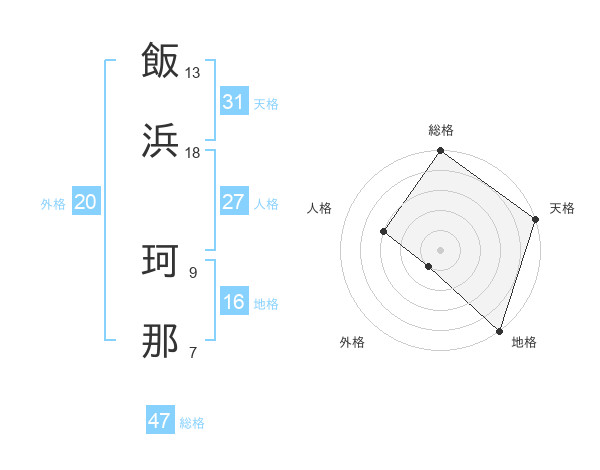 飯浜 珂那さんの総格は47画の5点!