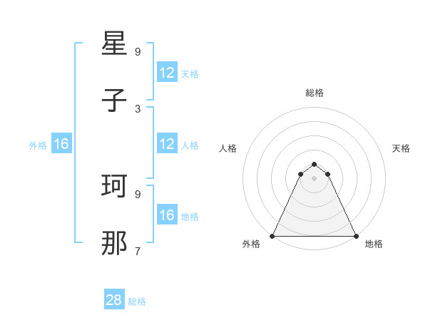 星子 珂那さんの外格は16画の5点!