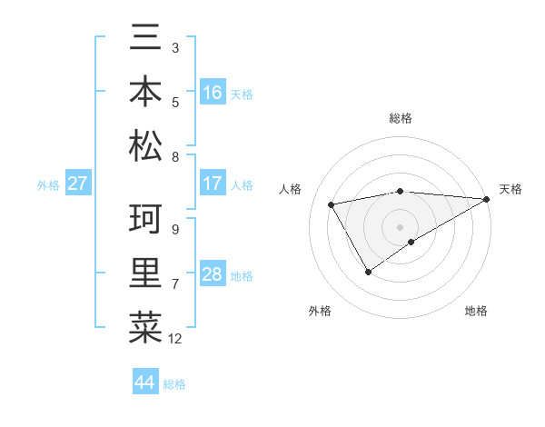 三本松 珂里菜さんを姓名の画数から五運を鑑定