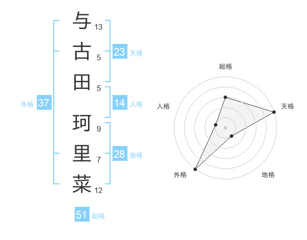 与古田 珂里菜さんを姓名の画数から五運を鑑定