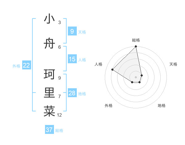小舟 珂里菜さんの総格は37画の5点!