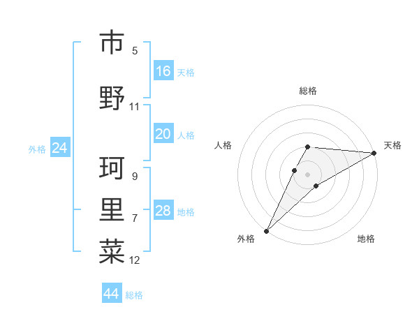 市野 珂里菜さんの天格は16画の5点!