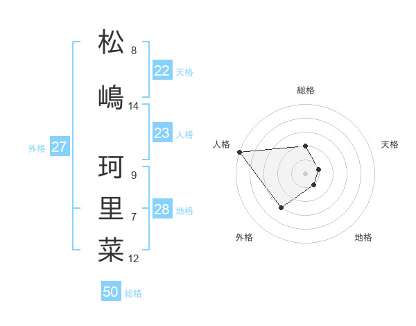 松嶋 珂里菜さんの総格は50画の2点!