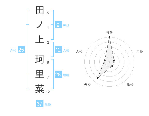 田ノ上 珂里菜さんを姓名の画数から五運を鑑定