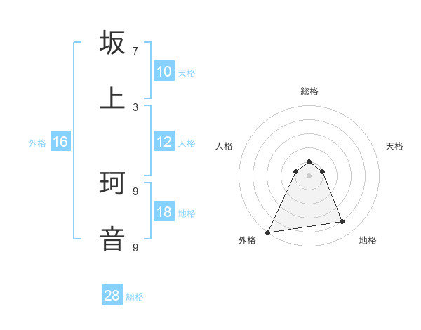 坂上 珂音さんの総格は28画の1点!