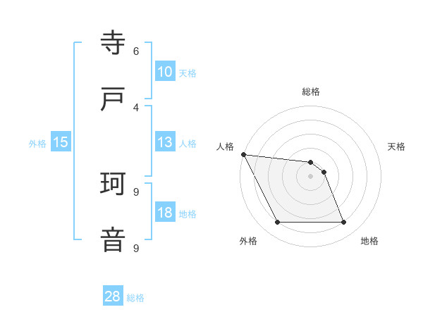 寺戸 珂音さんを姓名の画数から五運を鑑定